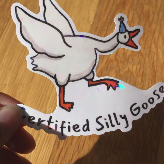 Are you a certified silly goose? Show the world with this sticker! Put it on your computer, water bottle, or anywhere else you need more whimsy.