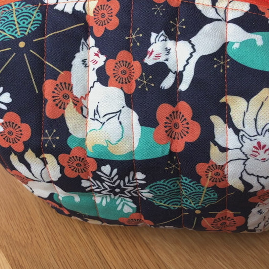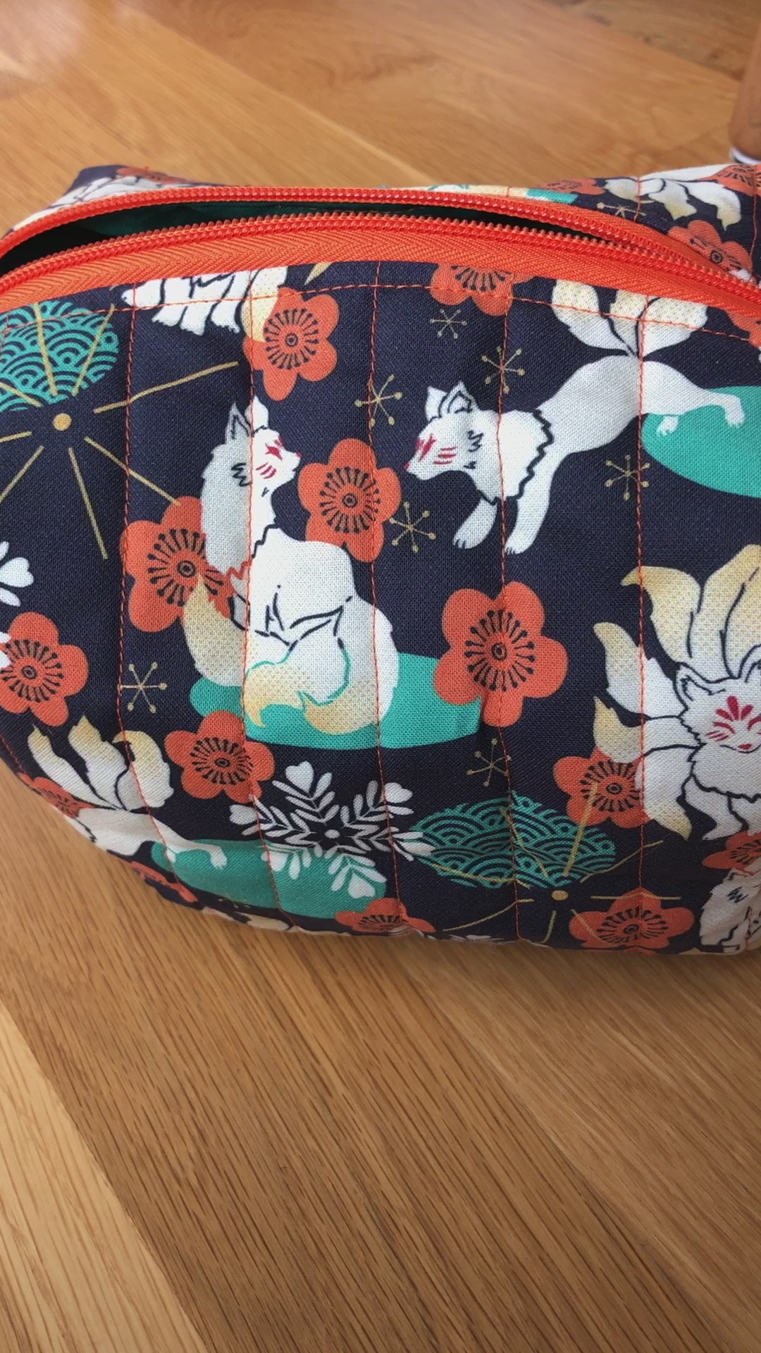 This carryall makeup bag is perfect for all your cosmetic needs. It's hand-sewn, roomy, stylish, and designed to keep your essentials organized at home or on the go. Fits nicely in your bag and is perfect for everyday use or for travel. The fabric features a vibrant fox, flower, and snowflake pattern making it perfect for the winter season and has a beautiful matching teal lining and bold orange zipper for a bright pop of color. The quilted exterior adds durability and luxury to the bag while also keeping your brushes, palettes, and skincare safe.